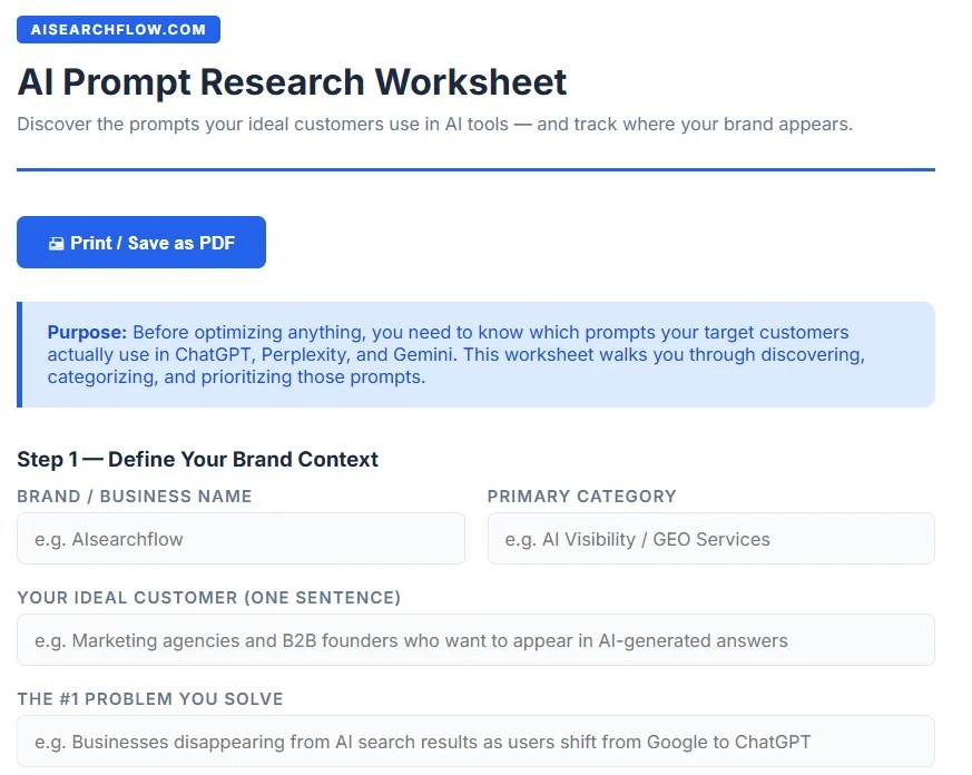 The AI Visibility Framework Blueprint is a complete, self-guided kit that walks you through exactly what to set up, what to write, and how to structure your online presence so AI tools understand, trust, and recommend your business.